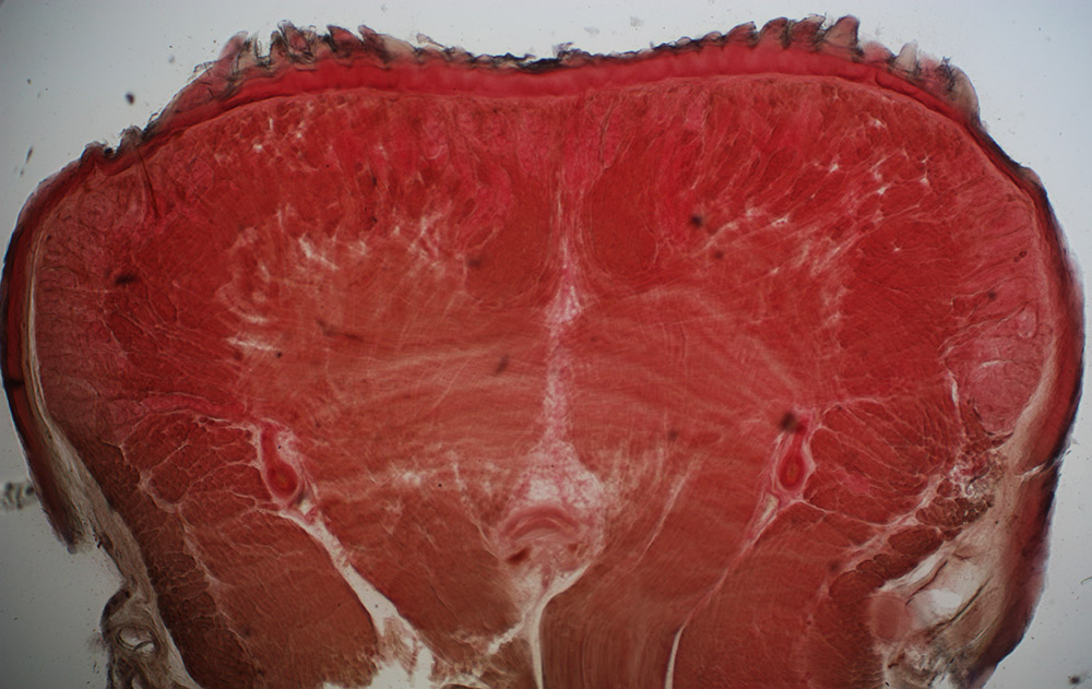 “Transverse section of bat’s penis”, prepared ca. 1881 by W.H. Bates (see Figure 1). Imaged with a 3.5x objective lens and C-mounted digital SLR camera on a Leitz Ortholux II microscope.