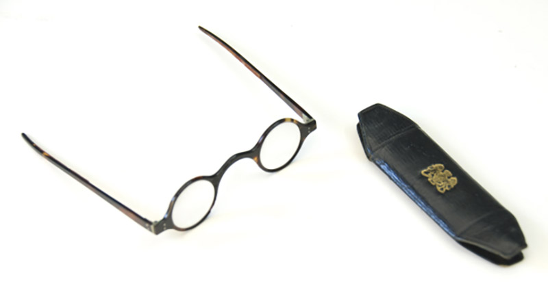 Eyeglasses by Thomas Rubergall. The case is printed with “T. Rubergall, Optician to his Majesty, 24 Coventry St., London", dating them to the reign of King William VI (1830-1837). Adapted for nonprofit, educational purposes from http://www.mhs.ox.ac.uk .