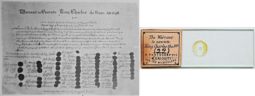 Microphotograph slides bearing the phrase “a photographic curiosity” are moderately common in antique slide collections and for sale at auctions. Most also carry the initials “JS”, although sometimes the middle initial is given, “JCS” (Figure 1). Stanley Warren (2006) presented a well-researched case which concluded that JS/JCS was John C. Stovin. Further evidence that confirmed the identification of Stovin was provided by the recent discovery of an 1881 publication by John Nicol, who wrote “Nearly twenty years ago I was presented by the maker, Mr. J.C. Stovin, of London, with a box of ‘London in miniature’ - a series of thirty-six microscopic reductions of stereoscopic views of London - microphotographs mounted in the usual way on slips of glass with glass covers cemented on with Canada balsam” (Figure 2).