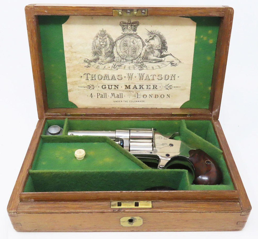 It is often repeated that T.W. Watson acquired his shop from a famous London firearms maker named Durs Egg, and that Watson possibly worked with Egg or one of his heirs. The truth is that Durs Egg died in 1831, and so could not have met Watson. Moreover, although Egg and Watson both operated from 4 Pall Mall, their businesses were separated in time by three other, unrelated businesses. Government records indicate that Thomas Watson worked for his uncle William until at least 1871, by which time the Egg family was out of the gun-making business.