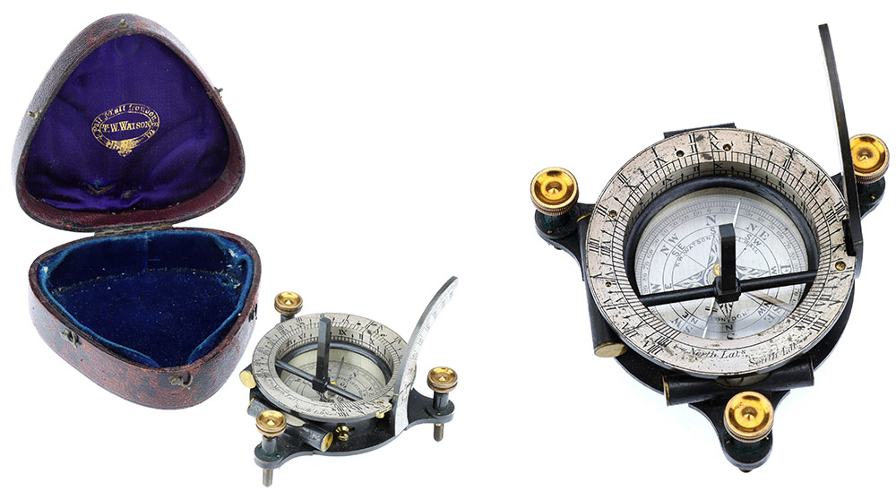 Pocket compass / sundial by T.W. Watson. Images adapted for nonprofit, educational purposes from an internet sale site.