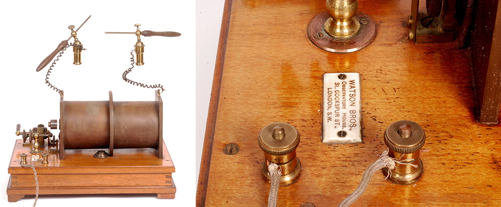 Figure 15. Rumkorff coil by Watson Brothers, 31 Cockspur Street. Images adapted for nonprofit, educational purposes from https://www.antiq-photo.com/en/collections/museum/sciences-and-technology/large-ruhmkorff-coil/