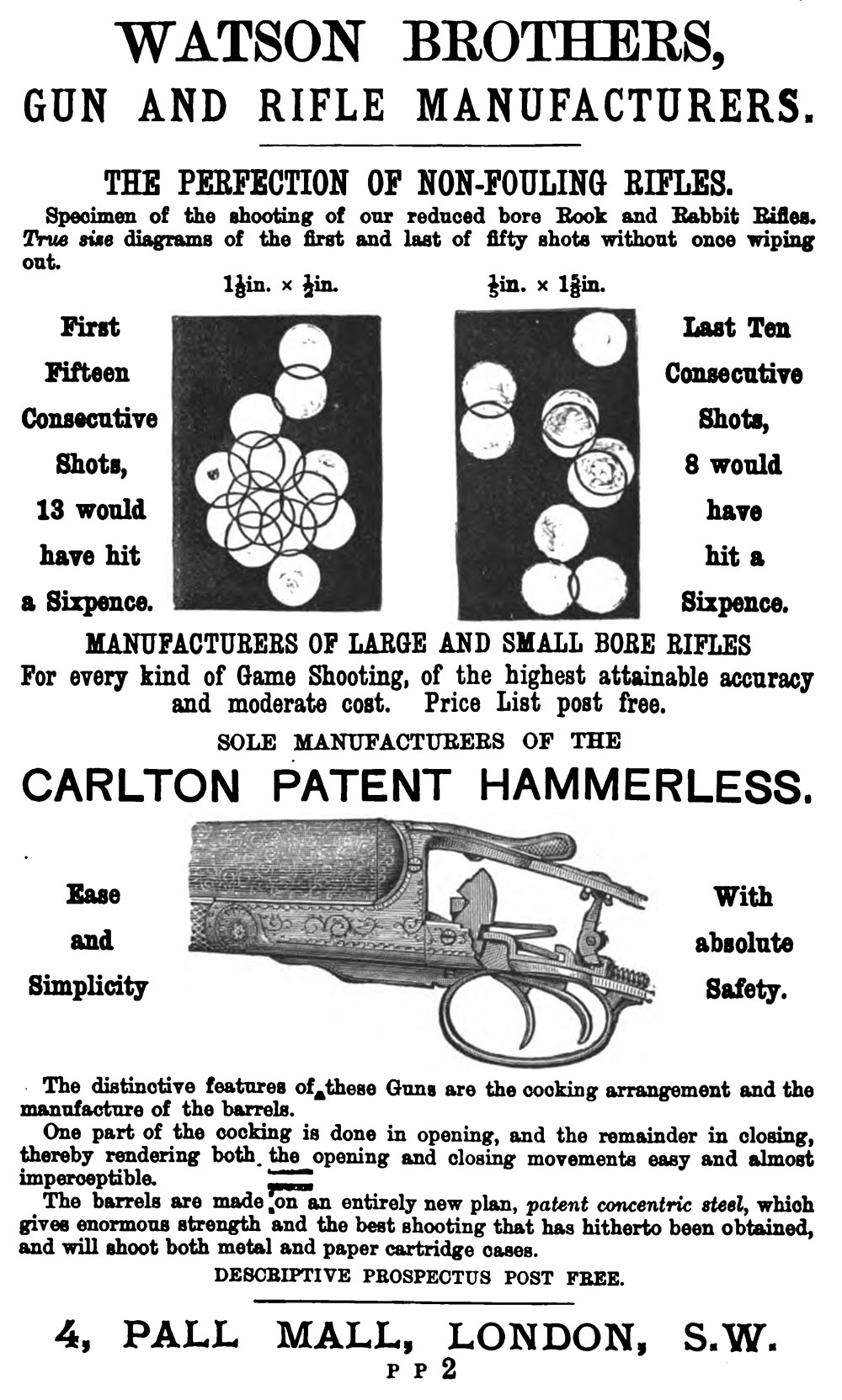 Kelly's Directory of Merchants, Manufacturers and Shippers (1897) “Gun, Rifle, and Pistol Manufacturers … Watson Brothers, 29 Old Bond street W”, page 296