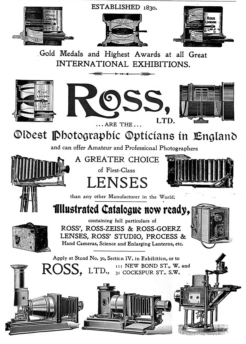 Illustrated Catalogue of the Royal Photographic Society's International Exhibition (1898) Advertisement from Ross Ltd., page L
