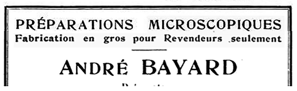 Segment of a 1936 advertisement by André Bayard, from "Bulletin de Société Francaise de Microscopie".