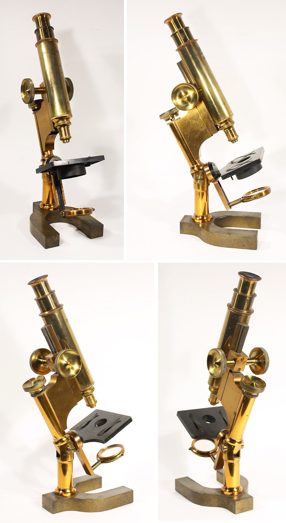 The Bausch & Lomb “Harvard” microscope shown in Figures 1-4 has a 3/4 inch objective lens, and lacks a substage. If those features are original, then it is the second of those donated instruments.