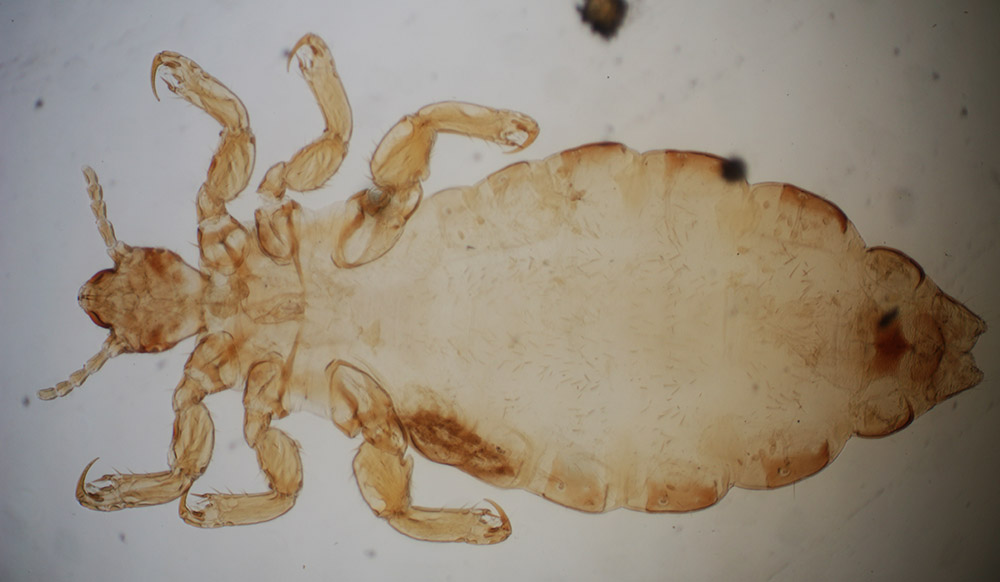 Human body louse (Pediculus vestimenti) from Verdun, prepared in 1916 by H. Gallot. The Battle of Verdun took place from February through December, 1916. Body lice were a serious danger during World War I, due to the “trench fever” diseases that these insects spread among troops and displaced civilians. Imaged with a C-mounted digital SLR camera and 3.4x objective lens on a Leitz Ortholux II microscope.