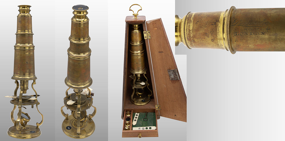 Many thanks to Joe Zeligs for helpful insights and to the owner of https://histoiredumicroscope.com for generously giving permission to share pictures of their microscopes.