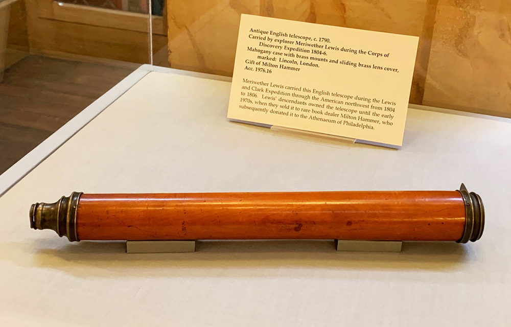 Circa 1790 refracting telescope by Charles Lincoln, which was carried by Meriwether Lewis during the 1804-1806 Lewis & Clark expedition across the western USA. Adapted for nonprofit, educational purposes from an image provided by Lewis and Clark National Park Service.