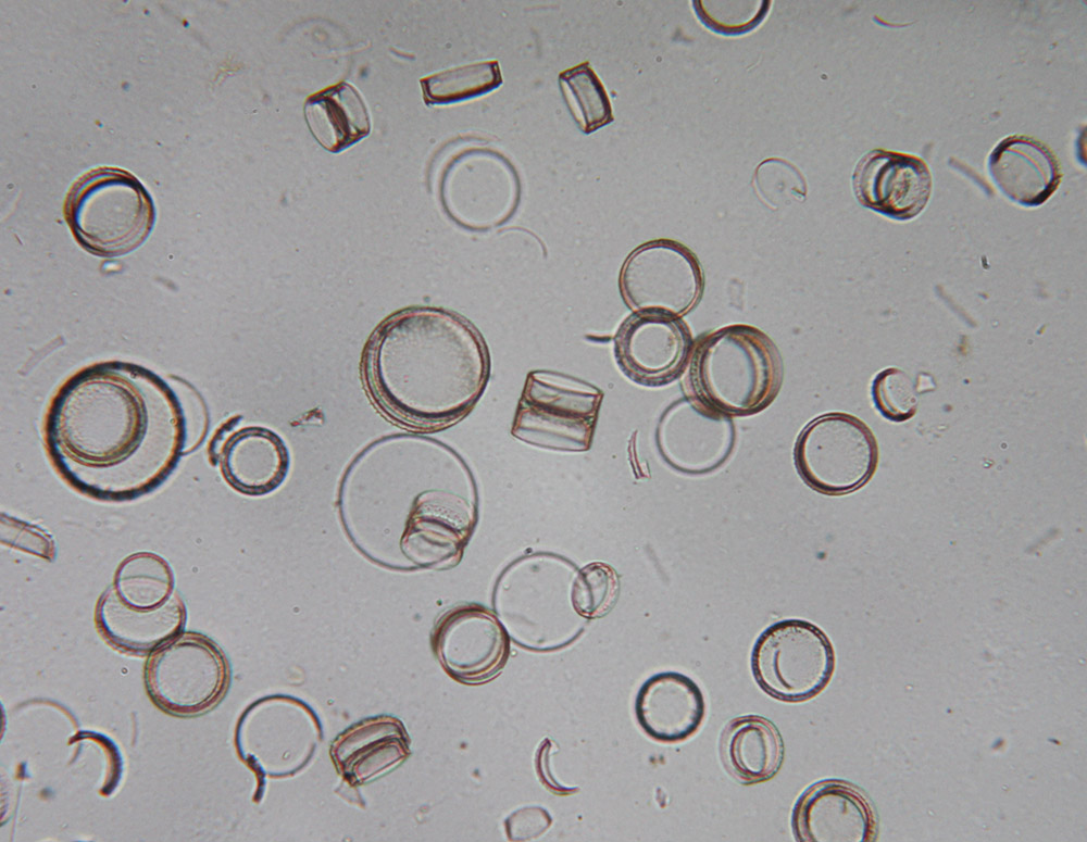 Figure 2. “Diatoms from Marine Algae, Burren, County Clare, 10-12-77, damar” (Figure 1). Imaged with a 25x objective lens and C-mounted digital SLR camera on a Leitz Ortholux II microscope.