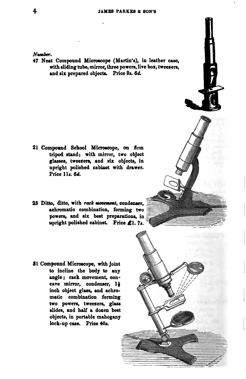 Microscopes included in J. Parkes and Son’s 1857 catalogue.