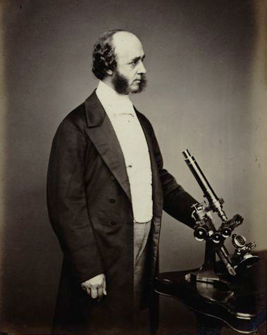 Paleontologist and anatomist Joseph Leidy (1823-1891) with a Powell and Lealand microscope. Photographer not known.