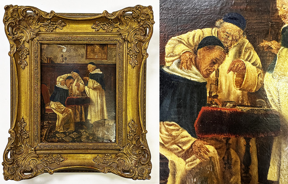 Oil painting of another unidentified man with a microscope, by an unknown artist.