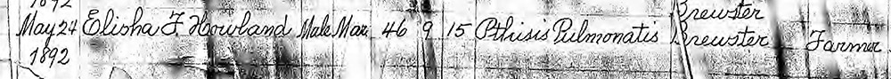 Death record of Elisha F. Howland (1892) accessed through ancestry.com