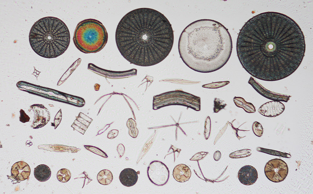 Magnified details of a Nell Steer slide of arranged diatoms extracted out of guano from the west coast of South Africa (see Figure 1). Imaged with a 10x objective lens and C-mounted digital SLR camera on a Leitz Ortholux II microscope.
