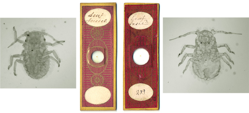 Figure 2. Preparations of the‘Leaf Insect’, by commercial slide makers Charles M. Topping (left) and John Barnett (right). From contemporary writings, it is very likely that Thornton also produced and sold slides of this aphid, but, what they looked like, remains unknown.