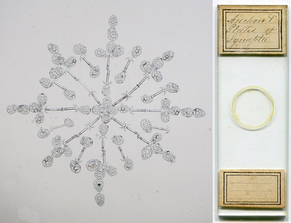 “Anchors & Plates of Synapta”, by Amos Topping. Imaged with a 3.5x objective lens, transmitted light, and C-mounted digital SLR camera on a Leitz Ortholux II.